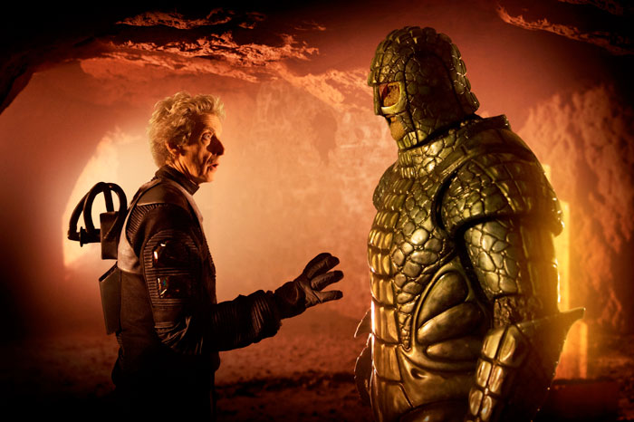 The problem being that these are struggles they’ve started themselves- they’re actively invading Mars, promised riches abound by their Ice Warrior chum Friday. This isn’t their home- this place belongs to the Ice Warriors. Four years after Cold War, Mark Gatiss has finally had the chance to write his episode revealing aspects of Ice Warrior society, and we’re introduced to the fearsome, imposing titular Empress, Ice Queen Iraxxa, a regal figure with dreadlocks that would make the Predator jealous. Played intimidatingly by the vertically gifted Adele Lynch, Iraxxa has a wonderfully over-acted sensibility to her character, practically spitting her words. It doesn’t make her ridiculous however, far from it, with the superb make-up job making the Ice Warriors and Iraxxa herself just as frightening and stand-out as their previous appearances. Outside of Iraxxa, Friday is a complex character in himself, with Gatiss playing smartly on previous Ice Warrior tendencies to, well, change allegiances rather fast, this time resisting the temptation and using Friday as a crucial part of the resolution, which would arguably be the strongest part of the episode as the warring forces reach their boiling point.